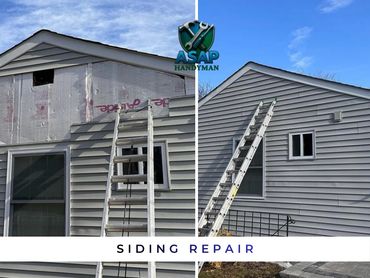 We handle wood rot repair, siding, drywall, painting, gutters, trim, and general home repairs.